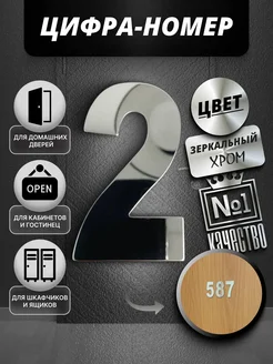 Номер для двери, ящика цифра №2. Хром