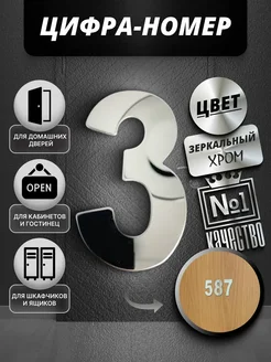 Номер для двери, ящика цифра №3. Хром