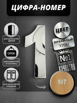 Номер для двери "цифра №1". Хром