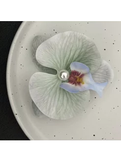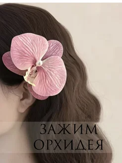 Зажим заколка для волос цветок орхидея персиково-розовая