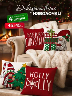 Новогодние наволочки 45×45 набор 4 шт