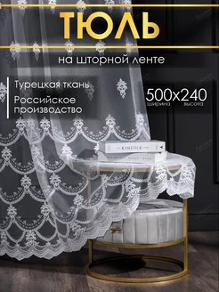 Тюль 500х240 в спальню гостиную готовый на ленте