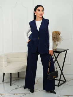 Вельветовый брючный костюм с жилеткой большие размеры