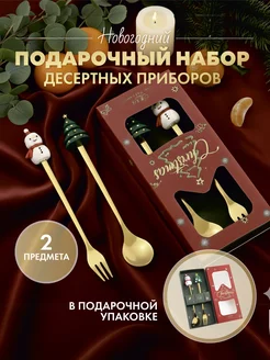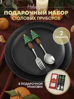 Новогодний подарочный набор столовых приборов 2 шт елочки