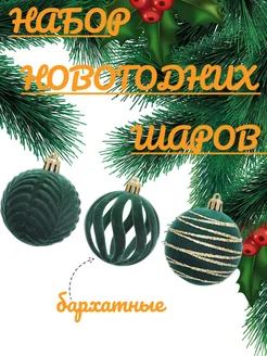 Елочные шары игрушки 6 см набор 6шт Зеленый бархат