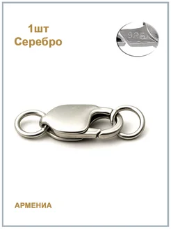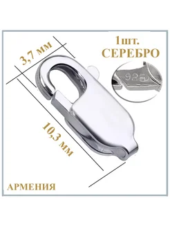 Карабин серебряный замок с кольцами 16 3мм x 8мм 2 4г