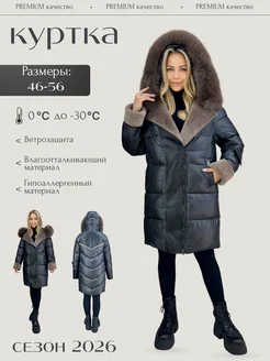 Куртка экокожа больших размеров с натуральным мехом зимняя