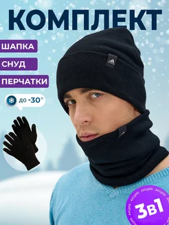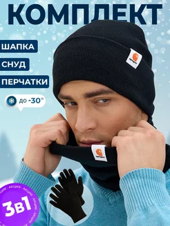 Шапка со снудом зимняя с отворотом осенняя комплект
