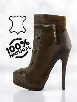 Босоножки Модельные Кожаные на платформе и высоком каблуке