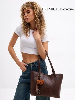 Сумка тоут через плечо большая кожаная шоппер А4