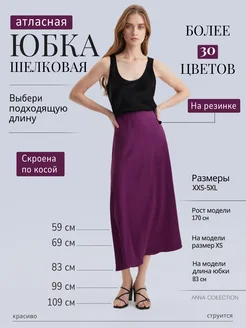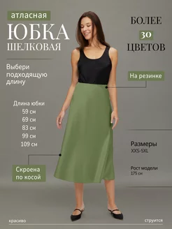 Юбка миди, атласная, шелковая, на резинке