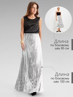 Юбка шелковая, сатиновая, праздничная, с пайетками