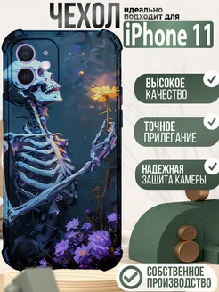 Чехол на iPhone 11 силиконовый с принтом арт череп