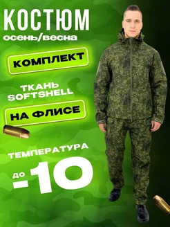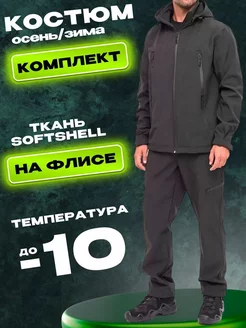 Флисовый костюм тактический теплый Softshell с капюшоном