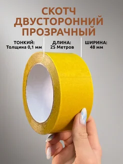 Двусторонний скотч крепкий тонкий прозрачный 48мм