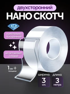 Двухсторонний нано скотч прозрачный крепкий 3м