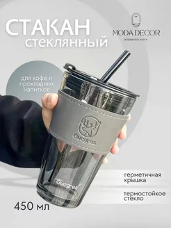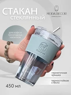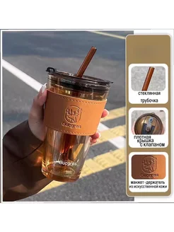 Стакан стеклянный с трубочкой и крышкой термостакан