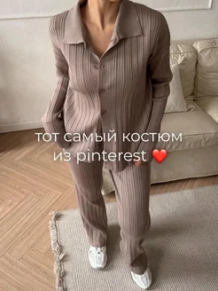 Костюм осенний вязаный лапша рубчик трикотажный с брюками