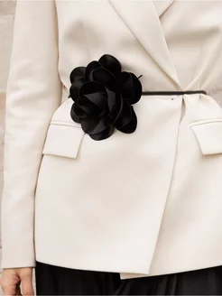 Пояс шнурок ремень с цветком черный для платья