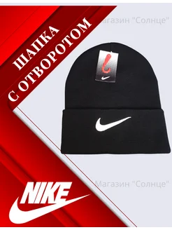 Шапка Мини-Бини Однотонная Вязаная с Подворотом