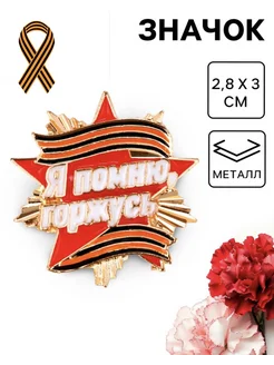 Значок на 9 мая ”Я помню горжусь” 3х2 8 см