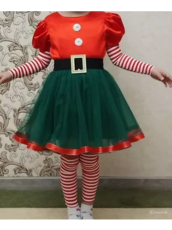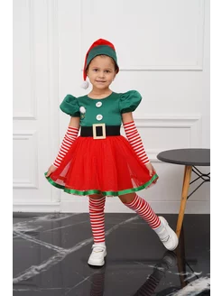 Карнавальный новогодний кастюм Платье эльфа зеленый 2026