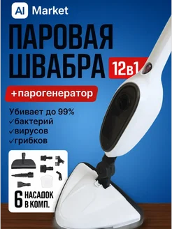 Паровая швабра для пола и одежды с нагревом 25 сек 6 насадок
