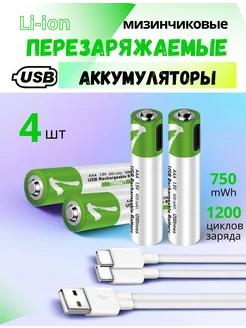 Аккумуляторные батарейки ААА аккумулятор от USB мизинчиковые