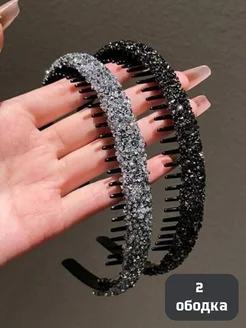 Ободок блестящий черный, серебристый, набор из 2х ободков