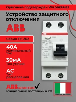 УЗО 40 ампер FH202 40А 6kА 30мА 2P тип AC