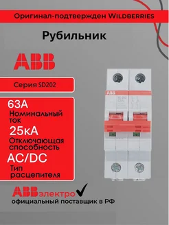 Рубильник 63 амперный 2 полюса SD202 63а 2P тип АС DC 440в