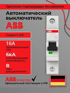 Автоматический выключатель 16ампер S201 16A 6kA 1P тип B