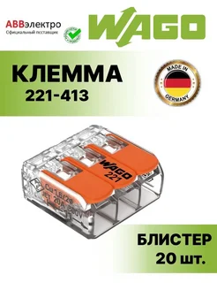 Клемма для проводов 3-контактная 0,2-4мм.кв, блистер-20шт