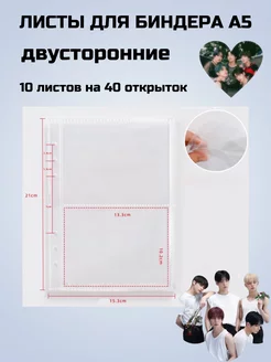 Лист для биндера 10 штук 1 ячейка для открыток двустронний
