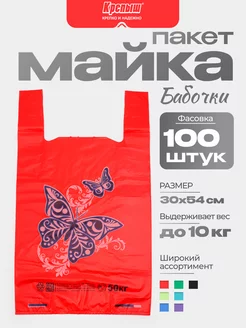 Пакет майка большой черный "Жасмин" 30см*54см, 100 шт