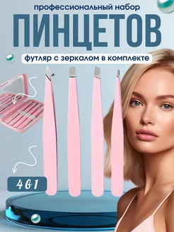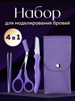 Набор для бровей 4 в 1 - пинцет, ножницы, триммер, футляр