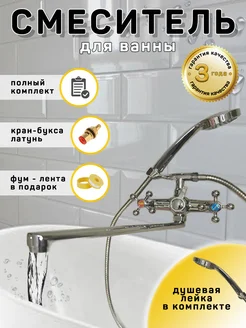 Смеситель на ванну вентильный с длинным поворотным изливом