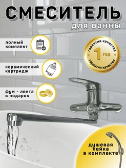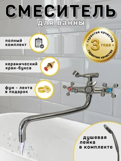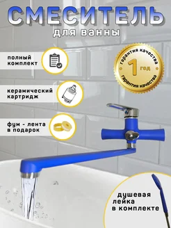 Смеситель ЭВЕРЕСТ для ванны с длинным гусаком, синий
