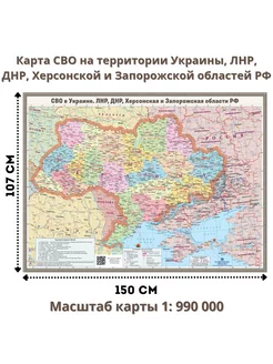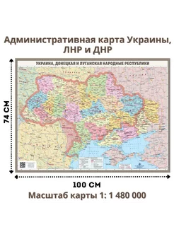 Административная карта Украины, ЛНР и ДНР 74х100 см