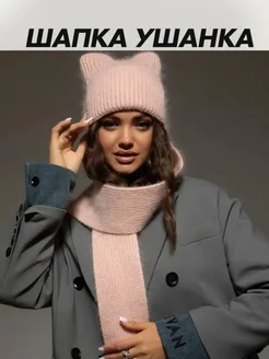 Шапка капор женский с шарфом и ушками