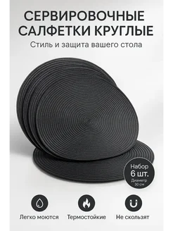 Салфетки под тарелки ПВХ 4 шт набор черные
