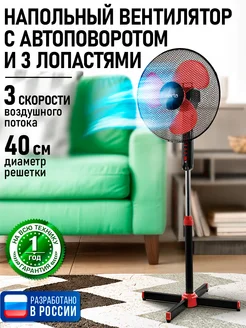 Вентилятор напольный для дома, 3 скорости, 40 см, 50 Вт