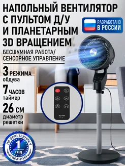 Вентилятор напольный для дома с пультом и таймером, 26 см