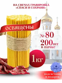 Свечи церковные восковые освященные №80 пачка 1 кг 200 штук