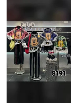 лонгслив худи свитшот оверсайз рваное с принтом Мики Моус