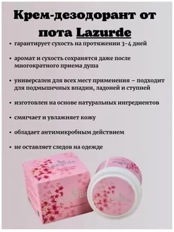 Парфюмерный крем-дезодорант Lazurde, от запаха пота, 50 г