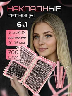 Накладные ресницы Набор пучки 6в1 Изгиб D 700шт