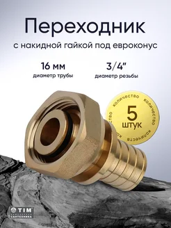 Переходник накидная гайка евроконус 16х3 4 ВР - 5 штук