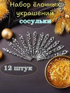 Набор игрушек украшений на елку Сосульки прозрачная 12шт