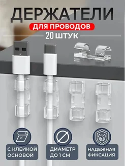 Держатель для проводов самоклеящийся 20 шт прозрачный